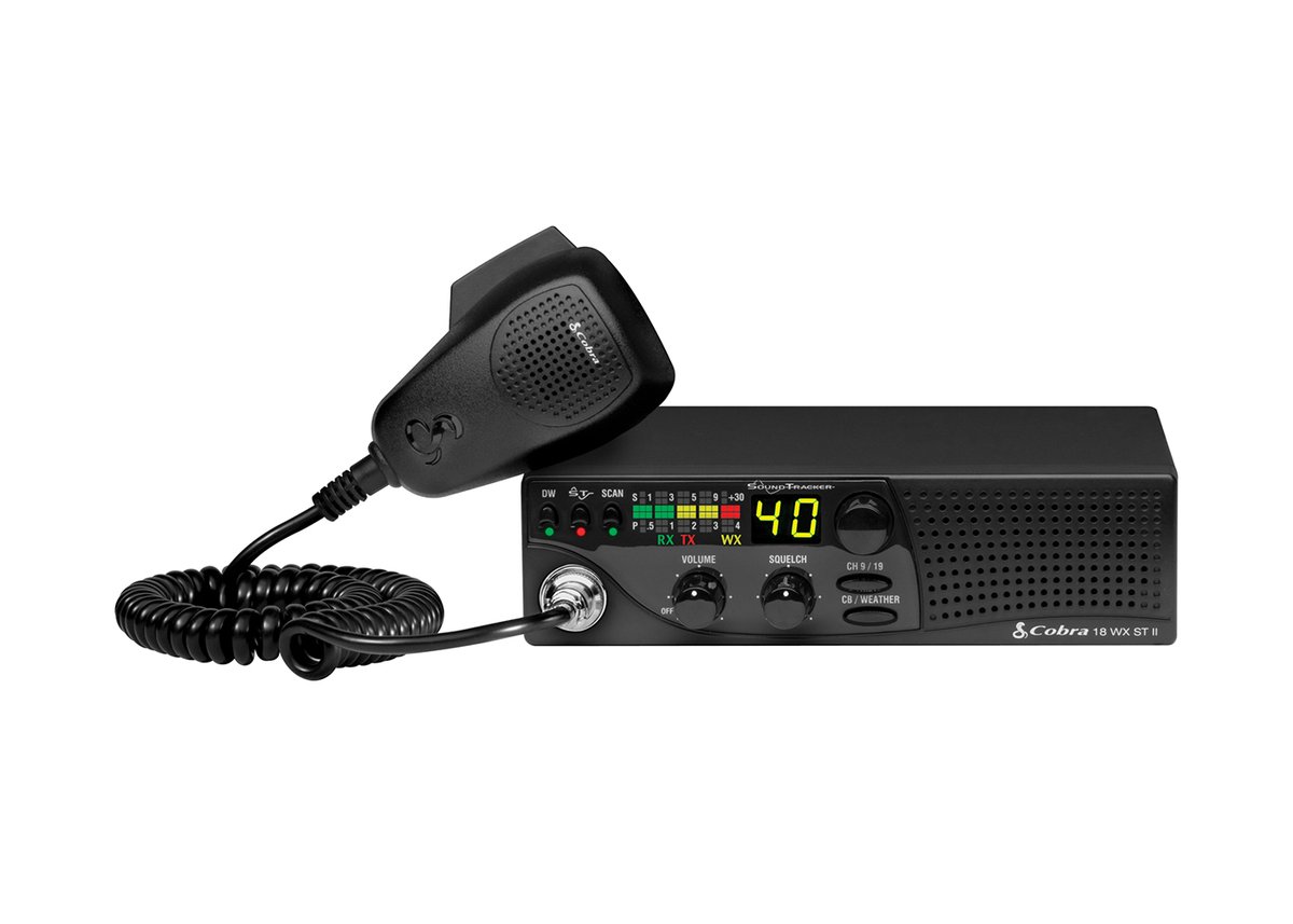 The 18 WX ST II is a 40 Channel CB radio with 10 Weather Channel reception and front-firing-speaker ideal for use recreational vehicles. Plus Dual-watch to monitor two channels simultaneously and all 40 channel scan in a sleek compact design.